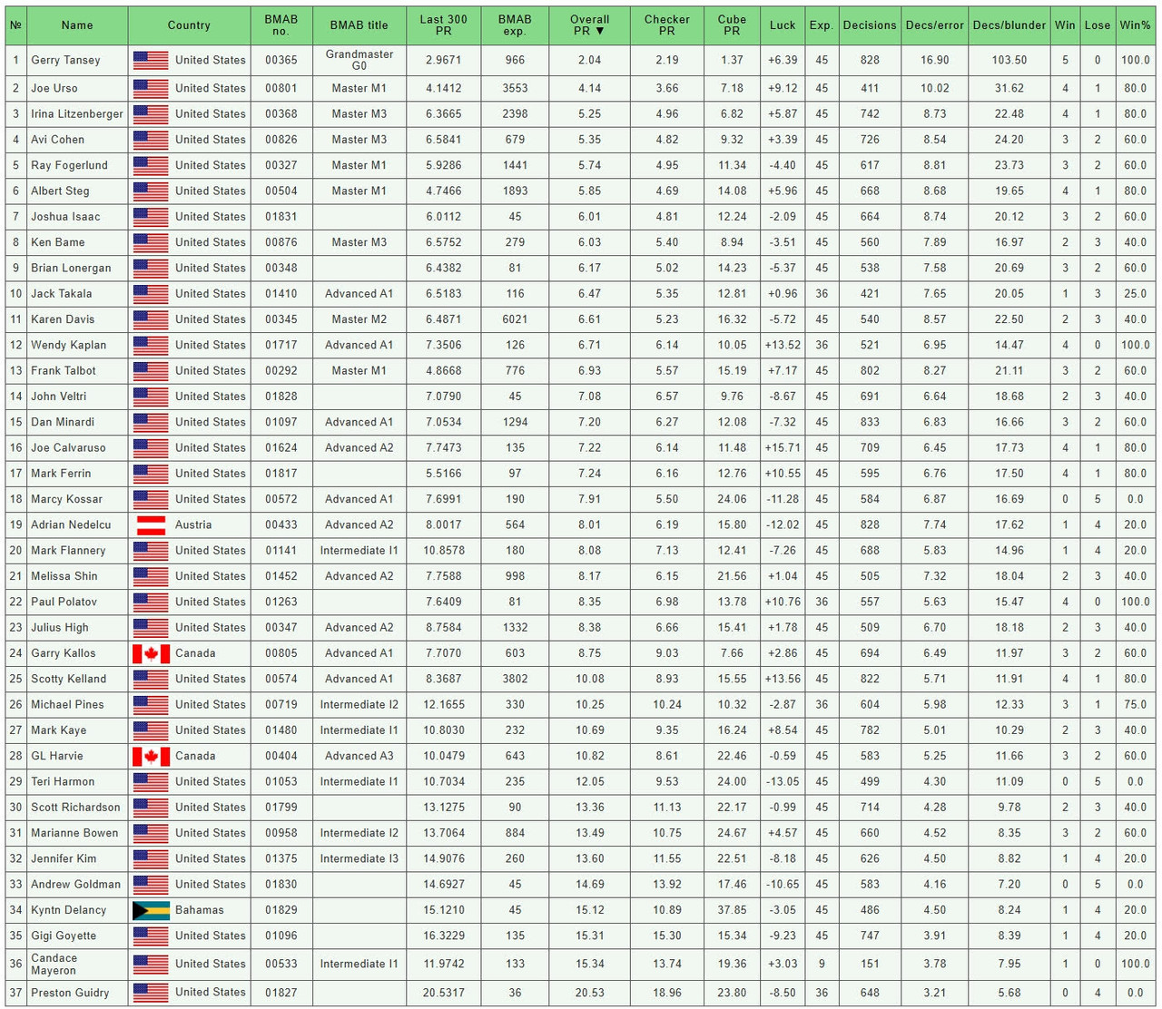 Players Cup BMAB Chicago (May 21, 2025) Stats: