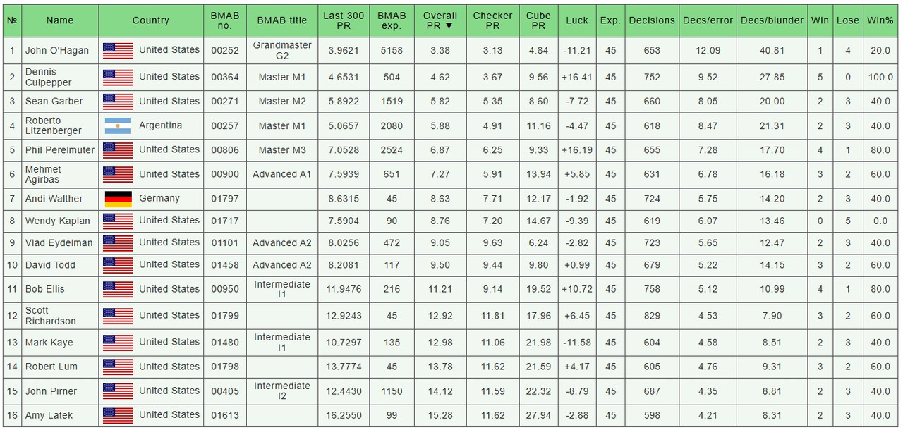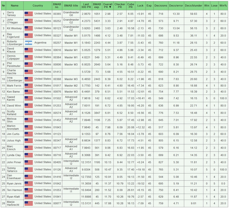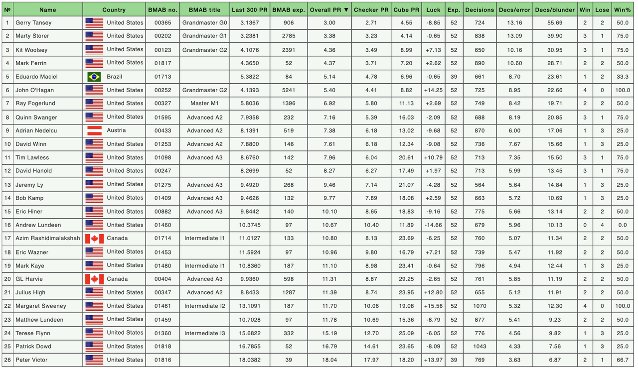 BMAB Denver Players Cup (October 9, 2025) Results: