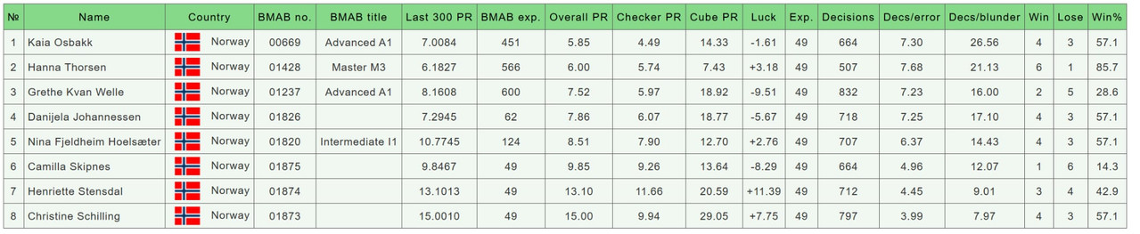 1st Ladies BMAB Oslo (November 9, 2025) Stats: