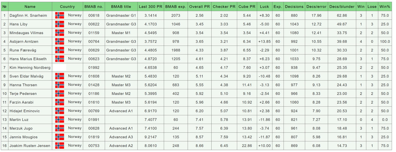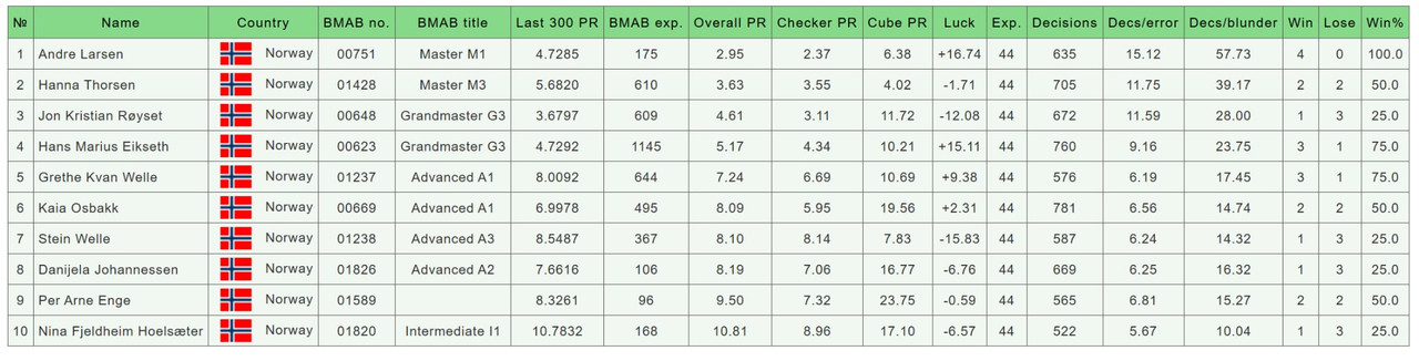 BMAB NORWAY (November 22nd, 2025) Stats: