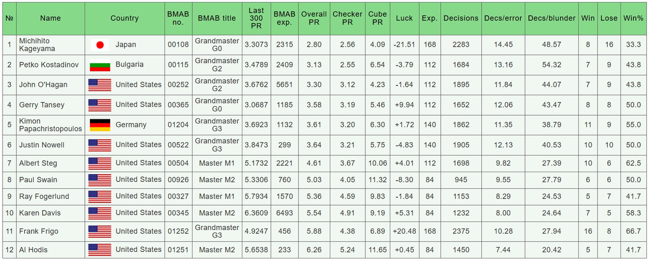 Players Cup BMAB Chicago (May 21, 2025) Stats: