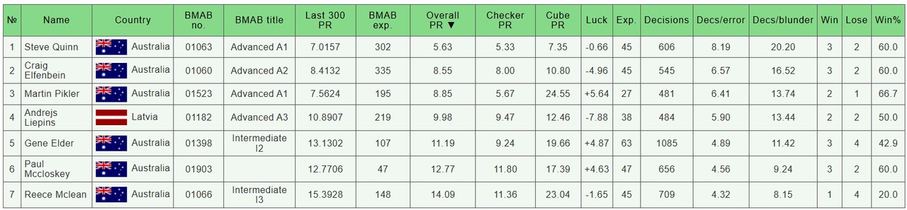Backgammon Results – Oceania